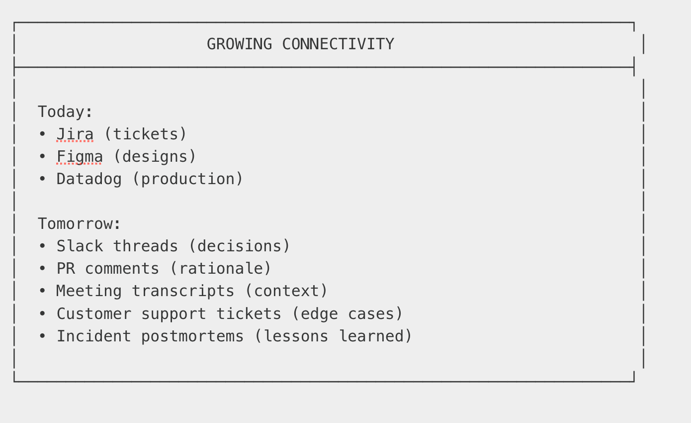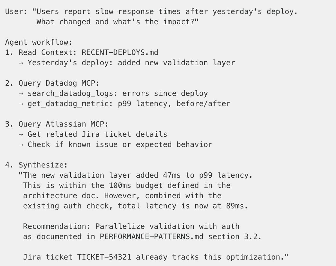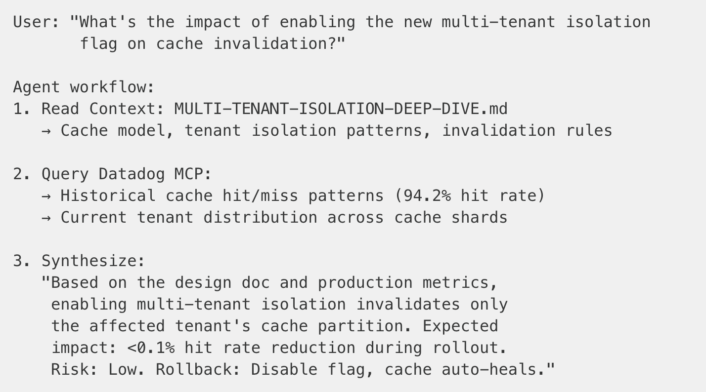 This transforms context from “what we wrote down” to “what we wrote down, verified against production.”