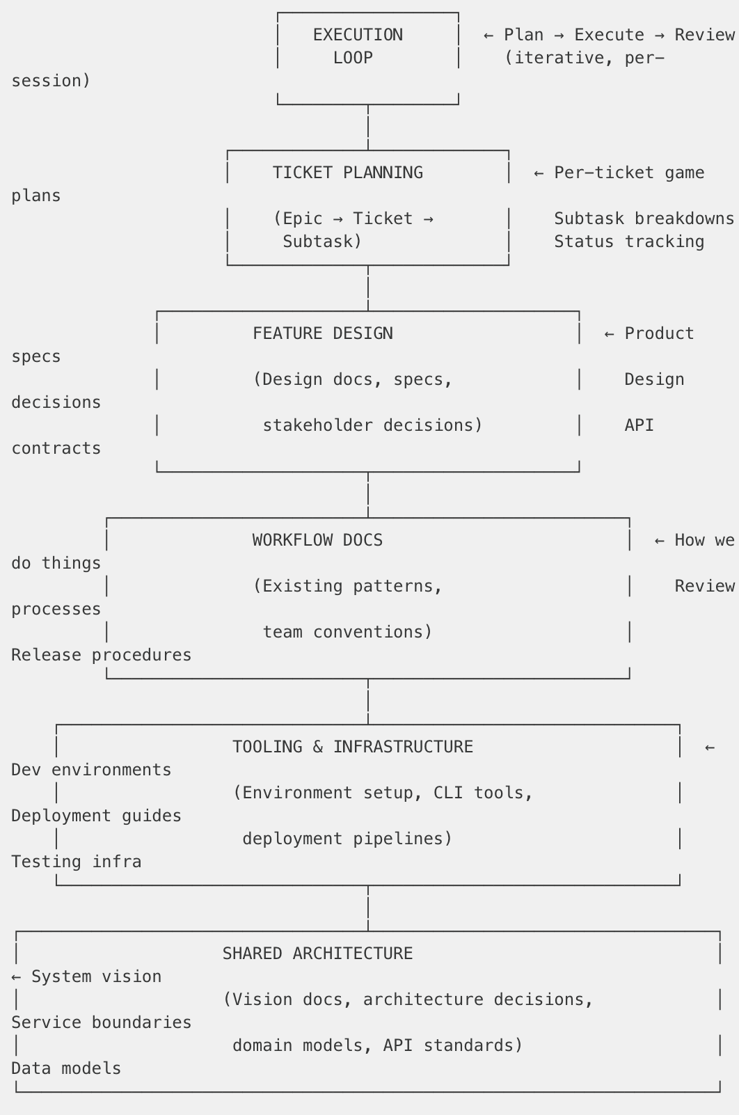 What made CaC effective wasn’t just having documentation—it was having layered context where each layer builds on the others. Nothing needs to be rewritten or reinvented. Each layer references the knowledge below it.